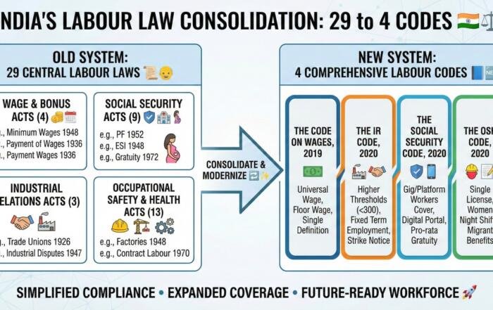 The Government of India has consolidated and amalgamated 29 central labour laws into 4 comprehensive Labour Codes. This move [...]