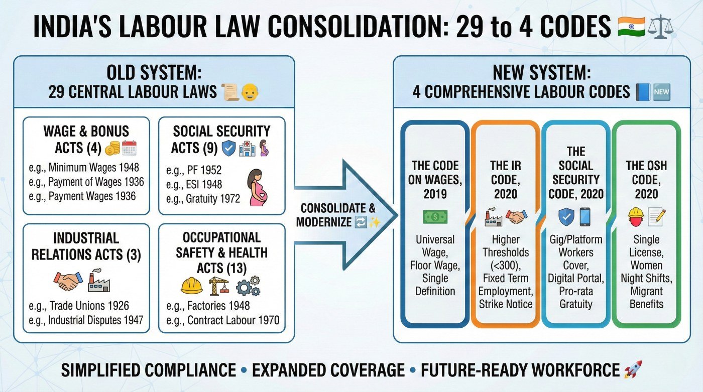 Comparison of Old 29 Labour Laws and New Four Codes